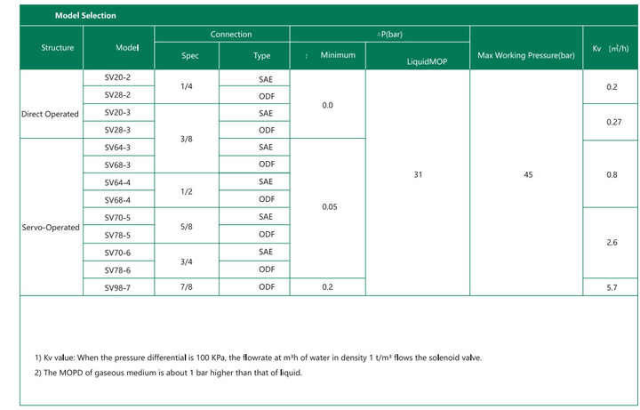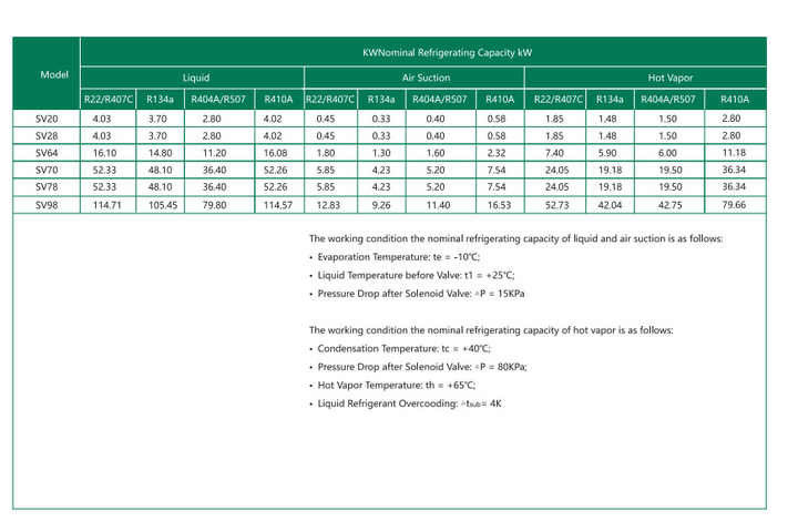 A válvula solenoide modelo SV é utilizada nos tubos de líquido, sucção de ar e vapor quente das instalações de refrigeração, armazenagem a frio e ar condicionado,